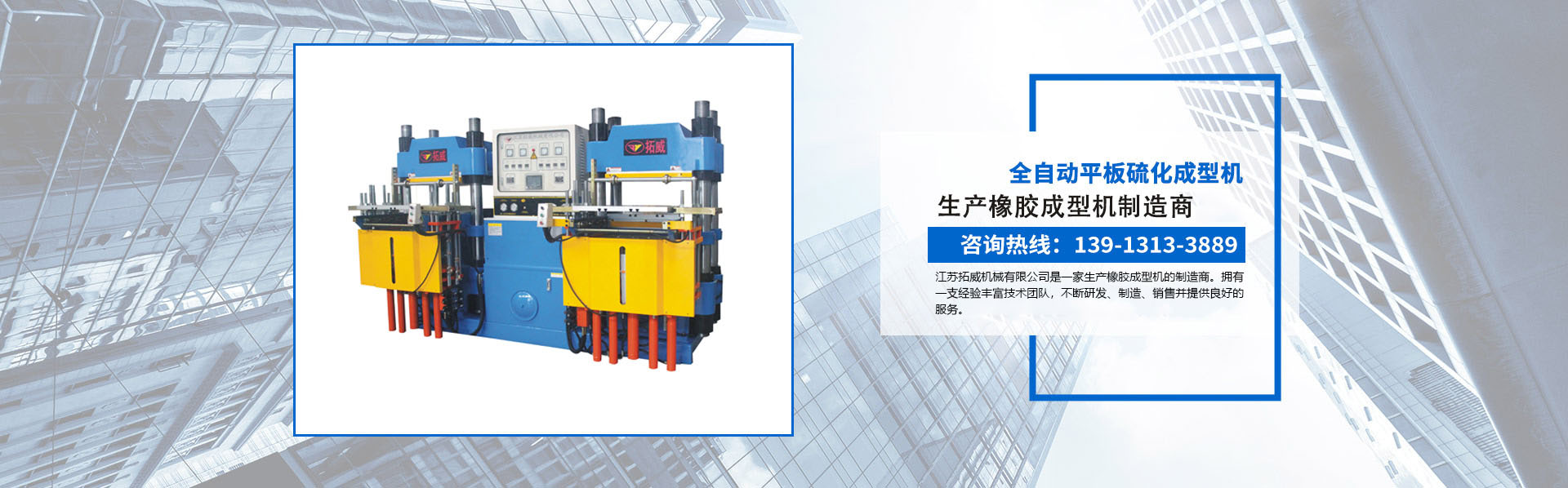 江蘇拓威機(jī)械有限公司(原金壇市建陽(yáng)機(jī)械有限公司)是一家生產(chǎn)橡膠成型機(jī)的制造商。